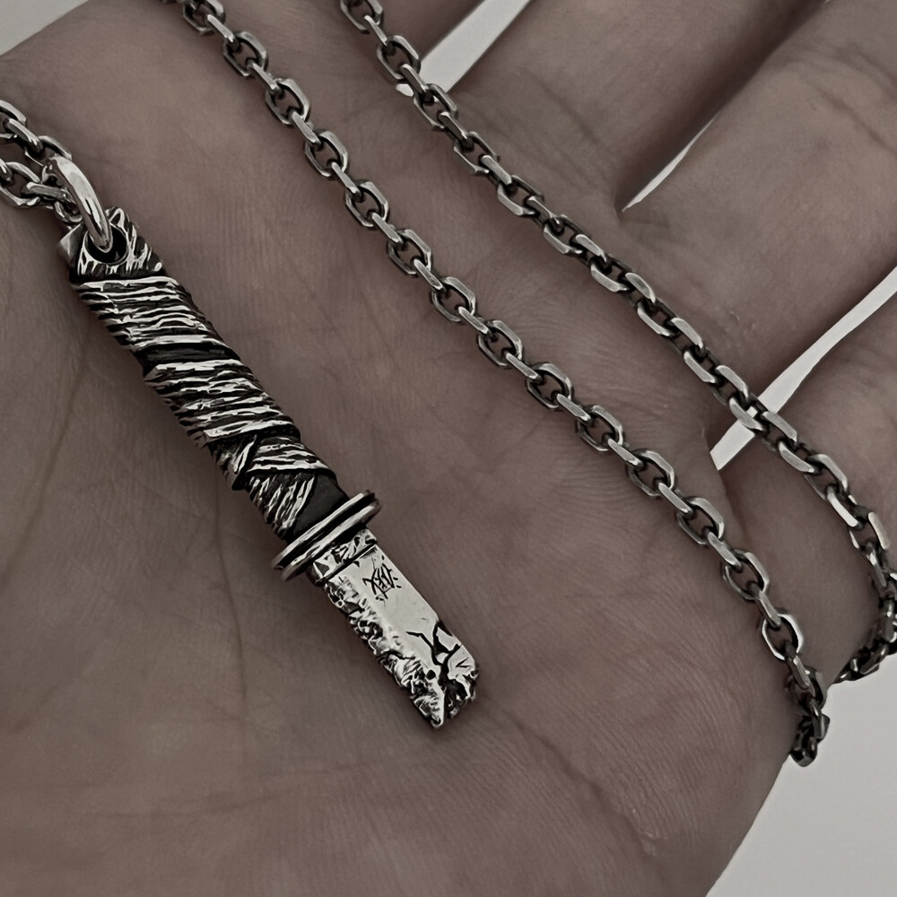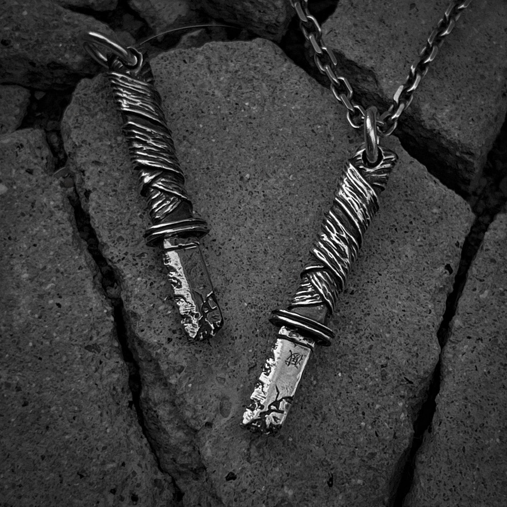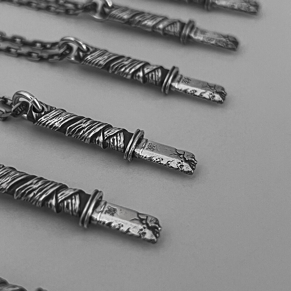 오랜 사용감과 검날에 금이 간 디테일이 담겨있습니다.