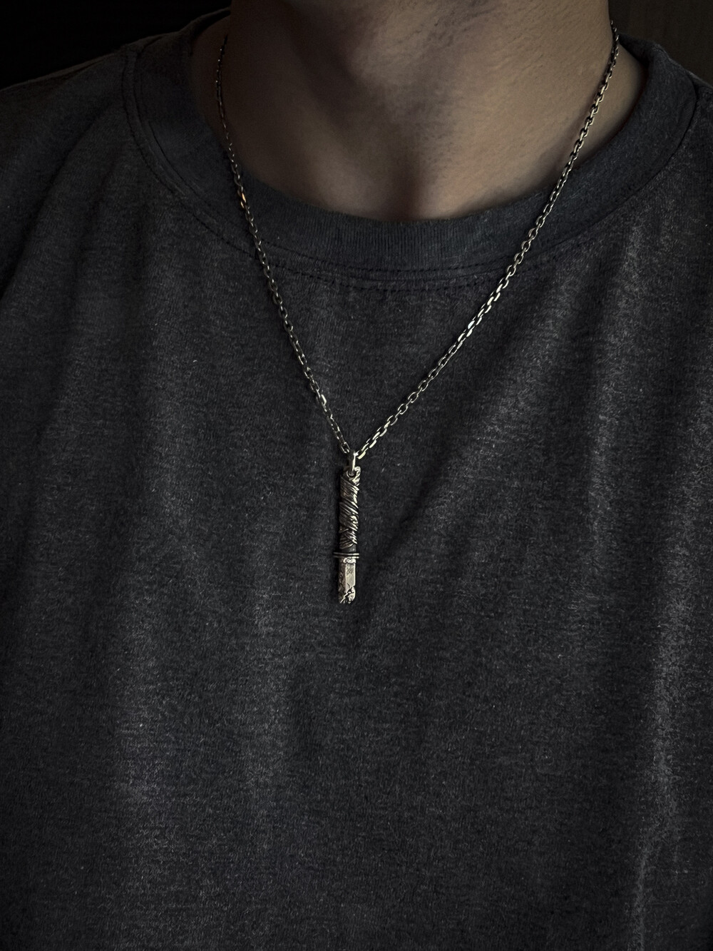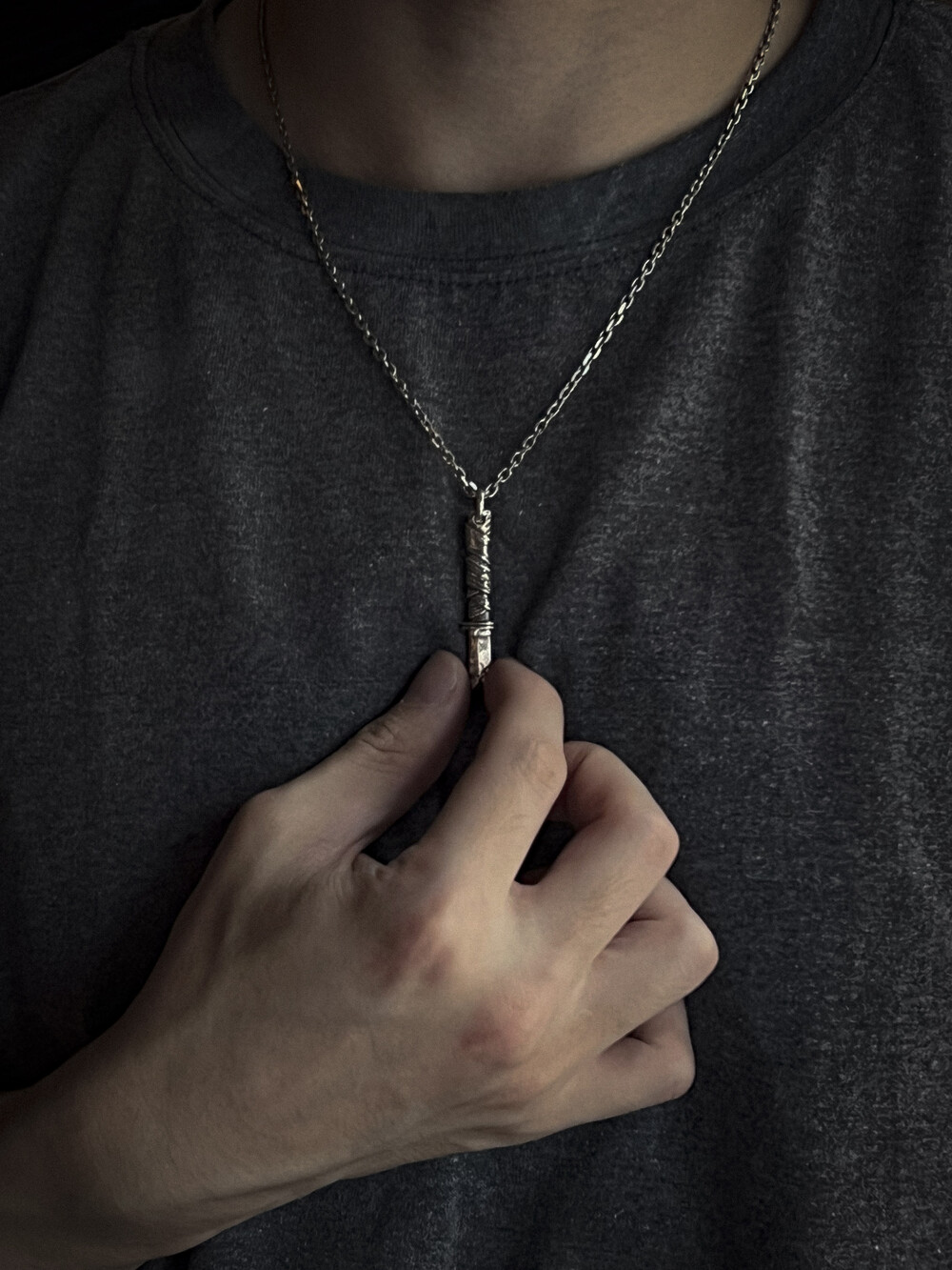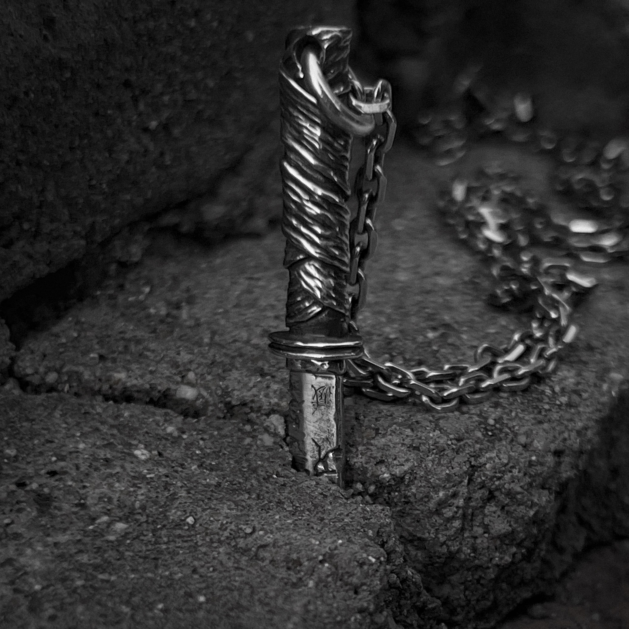오랜 사용감과 검날에 금이 간 디테일이 담겨있습니다.